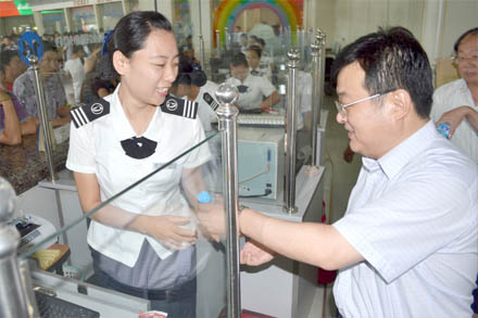 王谦总经理来到总站报班处,向坚守工作岗位的工作人员表示慰问,把冰糕、矿泉水一一送到他们手中。在发车区,看到济宇高速的驾驶员时,王总叮嘱他要注意高温下的行车安全,保证让旅客有一个清凉、舒适的旅途环境。王总还与客车的乘务人员亲切交谈,了解暑期运输中客流的变化情况,嘱咐大家克服高温带来的不利因素,竭尽全力为旅客提供各类服务。
