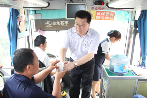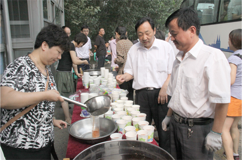 您现在的位置是:千亿(中国) > 集团要闻 集团公司“送清凉”服务队深入一线 次 集团要闻 发布时间:2011-07-21 17:33:13 集团公司“送清凉”服务队深入一线 7月21日,集团公司工会办与总部党支部组织四十余名总部党员干部组成暑期“送清凉”服务队,来到位于济青高速公路上的刁镇高速公路客运站,冒着30多度的高温为过往客车的乘车旅客和驾驶员,送去一碗碗爽口的绿豆汤。一上午的时间里,共为过往近百部客运车辆、近3000余名旅客送去了夏日的清凉。集团公司董事、工会主席张志坚、党委副书记杨国强、纪委书记刘凤仪、总经济师冯唯一、总经理助理齐杰带队参加了此次“送清凉”活动。 (党委组宣部)