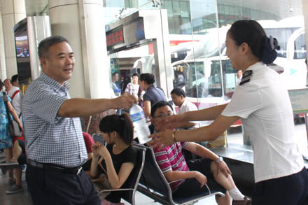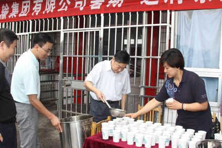 您现在的位置是:千亿(中国) > 集团要闻 战高温保安全 送清凉献关爱 次 集团要闻 发布时间:2012-07-06 19:10:39 战高温保安全 送清凉献关爱 7月3日和5日,集团公司组织开展了“夏日送清凉”系列活动。集团公司领导带领总部党员干部职工先后到济南长途汽车总站、总站南区和刁镇汽车站,慰问在酷暑下奋战一线的广大干部职工和过往旅客,为他们送上绿豆汤、冷饮和矿泉水,让他们感受到组织的关爱和夏日的清凉。 (刁力/文 张子花、徐成林、孙建、刘东方、张凯/摄)