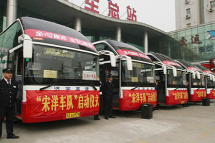 此次千亿官方网页版登录入口交运济宇高速精心挑选了6名驾驶员、5辆LNG新能源班车组成“宋洋车队”,由千亿官方网页版登录入口省劳模贾湘鸣担任“宋洋车队”队长,在车队成立仪式上,贾湘鸣带领队员现场誓师,五名乘务员也在班车上扎系红丝带,为宋洋祈福。“宋洋车队”队长贾湘鸣表示:宋洋用自己的善良和勇气谱出了社会的主流价值旋律,传递出足以撼动社会的正能量,我们“宋洋车队”也将以宋洋同志为楷模,将宋洋精神溶入我们的服务工作中,时刻将旅客利益放在第一位,用自己的行动,继续弘扬正气,传递社会正能量,让“宋洋精神”广为颂扬,为建设美丽泉城,建设大爱和谐社会贡献自己的力量。
