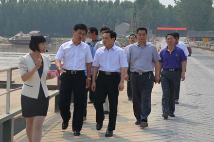 6月9日,集团公司董事长吴宗昌、董监办主任单天振一行在集团公司党委委员、黄河航运局局长孙延刚、副局长徐效法、纪委书记张立国陪同下到滨州浮桥、泺口浮桥调研。