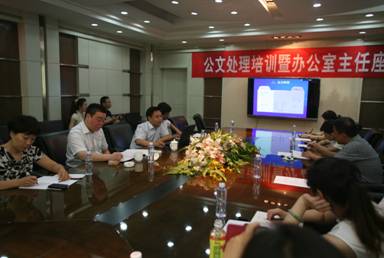座谈会上,集团公司邀请省国资委办公室卢永生科长就2012年公文处理规范的变化进行针对性的公文写作培训。从公文规范的变化、行文规则、常用公文文种、公文拟制等诸多方面给予详细讲解,并结合具体的公文示例和工作实际,生动形象地对日常公文排版操作提出了规范性地要求,进一步加深了办公室人员对新的公文规范的认识和理解,有利于提高集团整体的公文写作水平。同时集团公司办公室和各单位分别围绕公文拟制、公文流转、信息编辑以及工作开展过程中所存在的困难问题进行了深入的研究和探讨。最后集团公司办公室王云利主任在总结目前集团行政工作创新举措的基础上,指出要以此次公文培训为契机,增进各单位彼此间的沟通联系,进一步增强行政工作的主动性和责任感,共同提升集团行政管理水平。