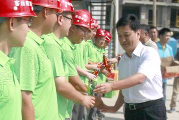 七月盛夏,连日来的高温和暴雨天气,给重点基建项目工程施工以及一线职工安全生产工作带来了严峻考验,集团公司领导高度重视,7月24日,集团公司董事长、党委书记吴宗昌、集团公司董事、工会主席张志坚、纪委书记刘凤义、总经济师冯唯一等领导组成“送清凉”慰问组,专程来到济南市重点工程——“济南西客站综合客运枢纽工程”项目部,向冒着酷暑战斗在生产一线的广大职工表示亲切慰问,并为他们送去防暑降温物品和一份关爱。