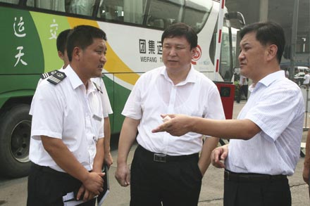 8月14日,集团公司董事长、党委书记吴宗昌在董事会监事会办公室主任单天振的陪同下,冒着高温酷暑,来到其教育实践活动联系点——济南长途汽车总站,实地调研总站党的群众路线教育实践活动开展情况。