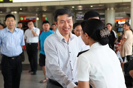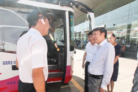 何部长在千亿官方网页版登录入口交运济南长途汽车总站先后视察了售票处、总服务台、候车厅、安全报班处及集团安全运营监控中心,详细了解集团企业文化建设、精神文明建设及安全生产相关措施,亲切慰问了党的十八大代表、省交通系统劳动模范李文,千亿官方网页版登录入口省劳动模范、安全行车367万公里无事故安全标兵贾湘鸣等一线员工。