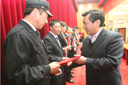 您现在的位置是:千亿(中国) > 集团要闻 集团公司参加“中国道路运输风范人物领袖品牌事迹报告会” 次 集团要闻 发布时间:2014-03-25 17:31:10 集团公司参加“中国道路运输风范人物 领袖品牌事迹报告会” 2014年3月24日,“中国道路运输风范人物领袖品牌事迹报告会”在交通运输部机关举行。报告会集中展示了“中国道路运输风范人物”和“中国道路运输领袖品牌”的优秀事迹、先进经验和发展理念。济宇高速总经理康岭、集团公司党委组宣部副部长刘东方、济宇高速总技术指导师贾湘鸣参加了报告会,会上,贾湘鸣作为“最美客车驾驶员集体”的代表,得到了交通运输部党组成员、副部长冯正霖的亲切接见。 “中国道路运输风范人物领袖品牌事迹报告会”现场 交通运输部党组成员、副部长冯正霖为贾湘鸣颁奖 贾湘鸣与交通运输部党组成员、副部长冯正霖合影留念 (党委组宣部)