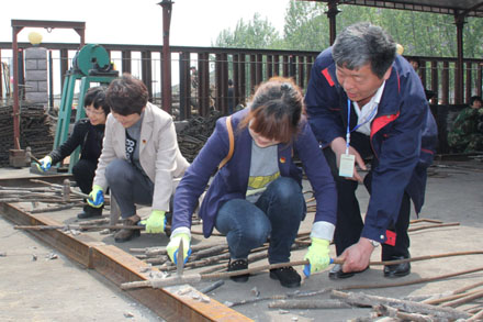 女队员们在邱矿党委副书记彭士伟、党群部副部长季书强的引导下,先后参观了原煤仓、洗煤线、机修车间、维修厂、园区等地。其中,草根发明、成本计量单等节能降耗举措给大家留下了深刻的印象。在维修厂区,女队员们参与了水泥钢筋的回收再造工作,手持6斤铁锤,体验了维修工人每人每天徒手清理200根钢筋的工作量。真实感受了员工为企业节约每一分成本的真情实感。