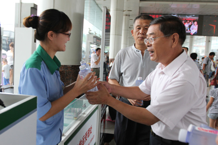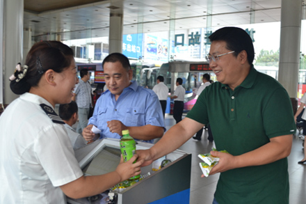 您现在的位置是:千亿(中国) > 集团要闻 关爱到一线 夏日送清凉 次 集团要闻 发布时间:2014-07-29 14:12:52 关爱到一线 夏日送清凉 7月23日、28日,为确保暑期安全生产,保障职工身心健康,集团公司党委组织开展了为一线送清凉活动。集团领导班子成员带领总部部分党员干部,到集团相关产业一线岗位慰问在酷暑下奋战的广大干部职工和驾乘人员,为他们送上冷饮和矿泉水,让他们感受到组织的关爱和夏日的清凉。 (刁力/文 刘东方、刘洁、李昂、朱吉昀、陈一鸣、高颖/摄)