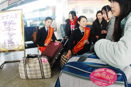 “中华第一站”济南长途汽车总站成立了“春日闪亮服务组”,全部由女服务员组成,为广大女性旅客特别是其中的老弱病残孕幼等重点旅客提供专属看护、提前购票、优先乘车等细致、贴心的服务;总站南区推出“女士儿童在线选座购票”、“女士儿童专线车”,