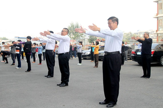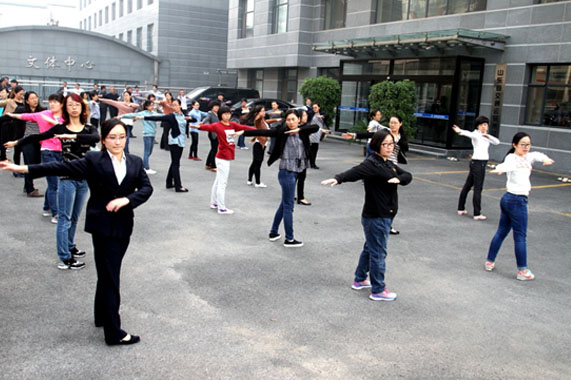 您现在的位置是:千亿(中国) > 集团要闻 集团总部开展工间操活动 次 集团要闻 发布时间:2015-10-20 11:17:17 集团总部开展工间操活动 为广泛开展全民健身活动,增强干部职工身体素质,10月15日,集团公司工会针对大家工作繁忙、较少参加体育锻炼的现状,率先在每个工作日的上午10点组织总部各部室开展工间操活动。 活动得到了干部职工的积极响应和热情参与,短暂的10分钟,让大家在紧张忙碌的工作之余,通过锻炼来放松身心、缓解疲劳,提振精神,真正做到“快乐工作,健康生活”。 (工会 刘卫娟)