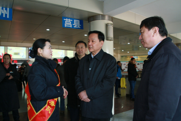 高厅长先后视察了总站进站安检处、总服务台、检票口、家乐超市旗舰店、驾驶员报班处、集团监控中心,详细了解春运期间各项便民利民服务和工作开展情况,并与十八大代表、全国劳模李文同志、济宇高速驾乘人员等一线员工亲切交谈,送上新春祝福。在集团监控中心,副总经理田景东代表详细汇报了今年春运在安全生产、运力保障、优质服务、宣传报道等方面采取的具体措施和取得的工作成效。