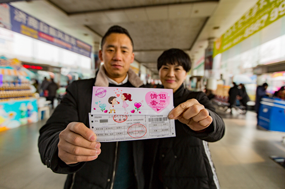 “喜乐会”扮靓行程 元宵节、情人节临近,总站南区针对情侣、夫妻推出“心有灵犀猜猜猜”有奖猜谜活动,猜中即可参与“砸金蛋、赢大奖”,爱心情侣套票、9折乘车优惠卡等精美礼品。兔兔快运推出“启发浪漫,速达爱情”鲜花易购活动,即情人节当天,提供八组寓意美好的花束优惠套餐,并享市区内免费配送服务。同时派出由女职工组成的“鲜花速达队”走进车厢,把浪漫和情意传递到每一位旅客身边,为广大旅客的旅途送上一份甜蜜与祝福。