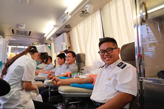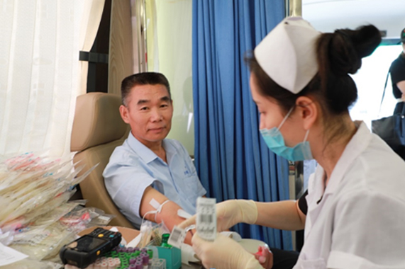 在献血的志愿者中,我们看到了济宇高速公司驾驶员刘延让、客三公司调度员张帅两位集团公司标兵,目前正值暑运学生返校的高峰时期,他们放下手中的工作,一早便赶到献血点,准备尽早献完,尽早回到岗位上。