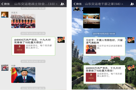 完善网上学习交流平台。依托微信、QQ等互联网现代化工具,建立了“千亿官方网页版登录入口交运老干部之家”、“千亿官方网页版登录入口交运老战士协会党支部”微信、QQ群等学习交流平台,将集团“转观念、深改革、促发展”会议精神传达给大家,树信心、提士气,同时,也用于组织活动、通讯联络、学习时政、通报集团发展情况等,引导老同志了解改革发展进程,传递积极进取正能量。十九大期间,通过平台及时将有关会议精神和报告解读及视频发送到每位老党员、老同志,他们无比振奋和感动,更加关心企业发展、支持集团改革。