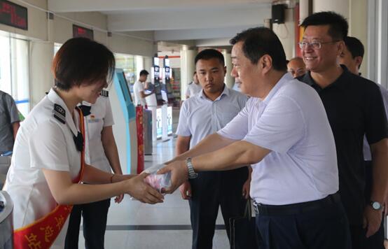 炎炎夏日,浓浓牵挂。7月24日上午,省交通工会副主席王迎军一行在集团公司党委副书记、工会主席杨国强陪同下,顶着酷暑高温,到集团公司汽车总站调研,并为一线职工送上防暑降温用品。