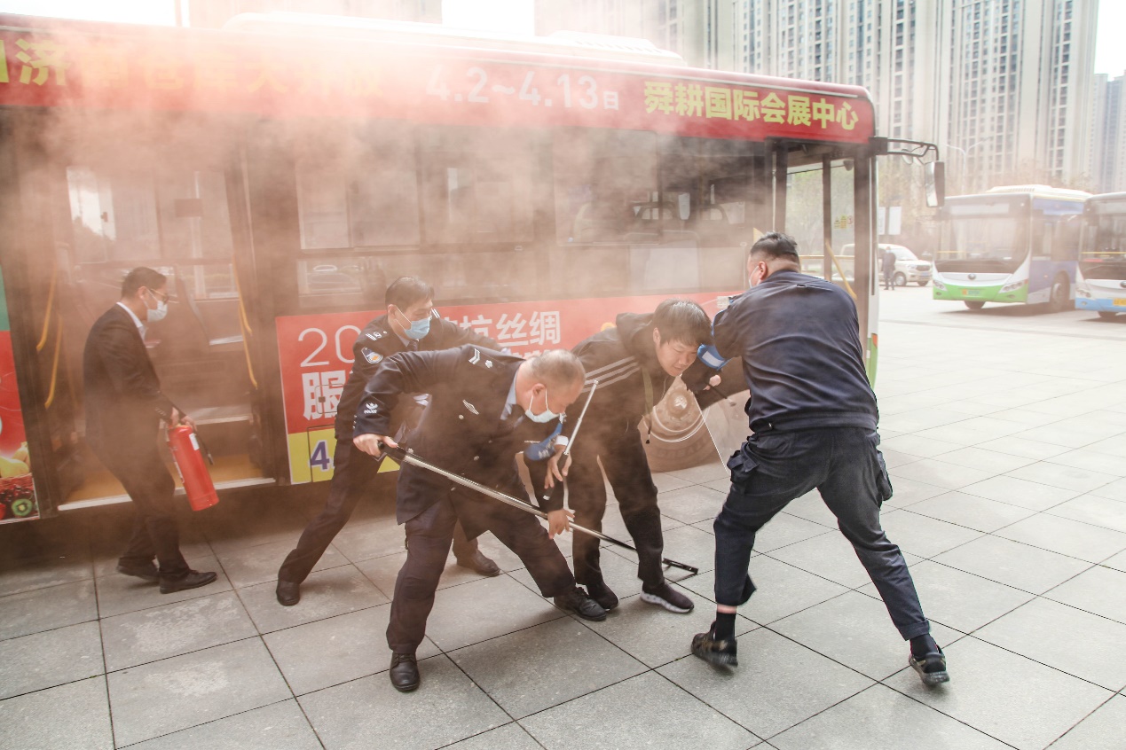 演练首先由公交分局第七派出所桑新宝同志进行消防、反恐及防疫知识培训,着重分析了当前安全维稳与反恐斗争形势,增强参训人员思想意识;实训场景模拟多种突发状况,进一步检验、提升员工对应急预案的运用度以及团队协作的配合度。演练期间,全体参训人员听从指挥、沉着冷静、迅速反应、协调配合,出色完成了各项预定演练项目。