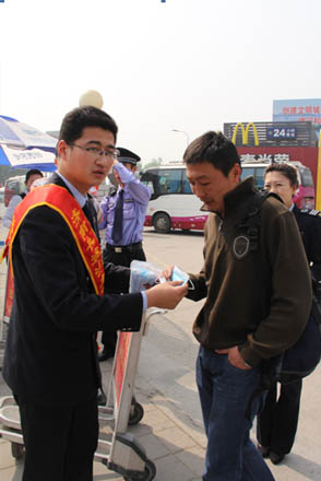 当天上午九点,“文明关爱先锋行”吹响启动的号角,南区团支部组织团员利用业余时间来到车站,开展了关爱旅客、服务一线的活动。团员们分成“旅客出行贴士组”、“导乘服务帮手组”和“公益知识宣讲组”3个小组,深入到进出站口、候车长廊和车站周边,为出行旅客送去行李推送、班次导乘、市内线路咨询等服务,并为旅客开展送水服务,为旅客递上一份清凉的问候;结合天气升温、旅客出行集中的近况,广大团员还积极向旅客讲解各类卫生和疾病预防常识;急救箱服务还给旅途中需要的乘客提供简单的医护服务,得到了旅客们的广泛好评。