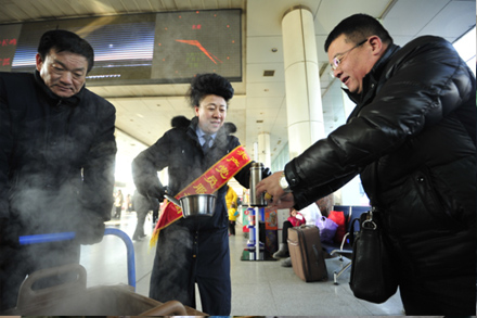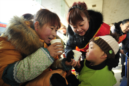 您现在的位置是:千亿(中国) > 客运场站产业 “党员爱心服务队”春运送温暖 次 客运场站产业 发布时间:2014-02-14 10:45:26 “党员爱心服务队”春运送温暖 “天太冷了,喝杯红糖姜水暖和暖和”。春运期间,在总站南区活跃着一支“党员爱心服务队”。他们以售票厅、候车室、进出站通道等关键区域为重点,主动为旅客送茶倒水、扶老携幼、帮助旅客提送行李。随着节后天气转冷,党员爱心服务队开始每天两次为旅客免费派送“红糖姜水”,每天累计派送近300斤,让候车旅客在寒冷的冬日感受到车站的温暖服务,老弱病残孕等重点旅客更是享受到遍及全程的亲情服务。 (朱吉昀)