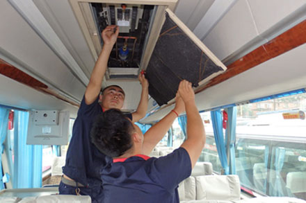空调高效洁净无异味 为确保车辆空调制冷性能,将空调检查作为每日例检必检项,要求收车后将车内空调统一设置到