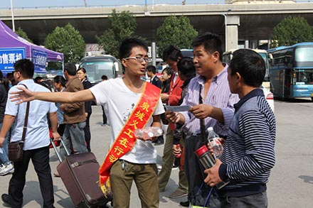 优质服务打造温馨车站 与20余家旅游公司和联合经营线路签订了运力组织协议,确保客流高峰期运力最大化;积极开展服务创新,技能革新、发展建议等活动,为旅客提供优质服务;推出了“最美站务员—由你赞出来”微信互动活动,营造良好氛围;针对旅游客流,增加了车站直达景区旅游直达车,丰富了车站旅游线路资源;深入结合建国六十五周年,推出了“请和国旗合个影”活动,把南区微笑、爱岗敬业、热爱祖国的服务形象深入人心。