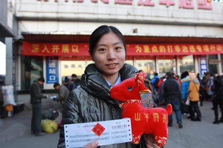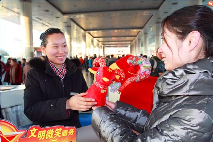 落实优质服务,打造温馨车站。 根据节日和旅客出行特点,推出特色服务和创新举措。检票科推出“承诺服务”公示服务项目,发挥“巾帼文明示范岗”的品牌优势,做好旅客出行便利贴、爱心地图、问不倒服务岗等百项服务;售票科推出“祝福随票送,羊年送吉祥”,把诚挚的祝福和羊年吉祥物随着客票一起送给旅客。
