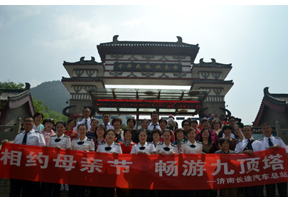 母亲节来临之际,济南长途汽车总站精心组织了“相约母亲节 畅游九顶塔”活动,邀请总站2014年度最美劳动者的母亲参观儿女的工作现场,并前往具有浓郁民族风情的九顶塔景区游览,在儿女的陪伴下度过了一个快乐而有意义的母亲节。