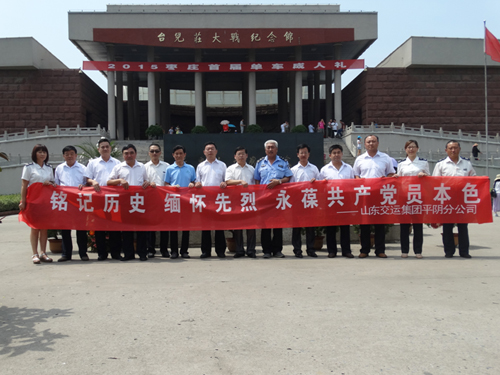 一是结合近期开展的“三严三实”专题教育,组织党员干部在锦东会议室召开了“严以修身”专题教育研讨交流会。二是结合自身实际,开展了“送清凉”活动,向工作在一线的员工和驾乘人员送去了降温茶、防暑药品和矿泉水,送去了公司的关怀与问候。三是开展了走访慰问活动,看望了两名困难党员并送去了慰问金。四是全体党员前往台儿庄大战纪念馆,学习英雄事迹,进行深刻的爱国主义教育。五是结合集团公司工会开展的“征集纪念中国人民抗日战争暨世界反法西斯战争胜利70周年‘中国梦、劳动美、爱国情’职工书画、摄影展作品”活动,推荐了《台儿庄战役纪念馆浮雕》 《修理工》2幅摄影作品参展,激发广大职工铭记历史、缅怀先烈、珍爱和平、开创未来的爱国情怀。