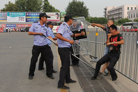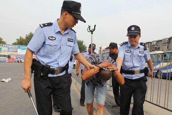 演练模拟从发现持械可疑人员进入车站开始,按照应急预案,各部门迅速进行实战状态,各负其责,分头疏散现场车辆和旅客,防止次生隐患的发生。治安人员利用反恐器械合力将歹徒制服,并通过一键报警系统报警,配合民警将歹徒扭送至车站派出所进行处理。