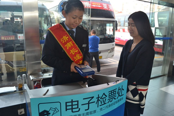 “电子检票”系统,全面投入使用。此次引进的“电子检票”设备及系统,凡通过公路客运出行网、总站官方网站、手机APP“济南汽车订票”购买客票的旅客,均可携带购买客票的二代身份证原件,直接到检票窗口“刷证”乘车,无需取票,大大简化了广大旅客的出行流程,节省了排队取票时间,得到了《济南日报》、《生活日报》、齐鲁网等多家媒体的报道