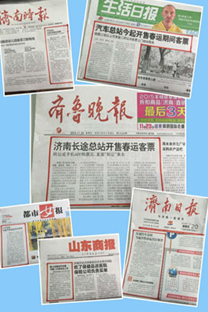 11月20日,济南长途汽车总站全面启动2016年春运售票系统。2016年春节为2月8日,春运自2016年1月24日开始,较之去年提前11天,且与元旦假期相隔较近,因此将出现持续时间长、客流反复等特点。为保障广大旅客顺畅出行,总站20日起,提前65天开售春运首日(2016年1月24日) 客票。