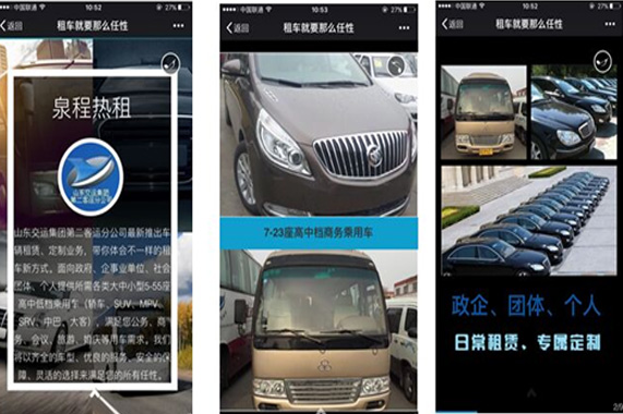 目前公司已通过制作“泉程热租”(即取泉城、全程之意)主题企业秀的方式,借助微信等平台,全力推出该业务,初期主要以日常车辆租赁为主,逐步向定向租赁、以租代购、以租代买等多元化经营服务推进。