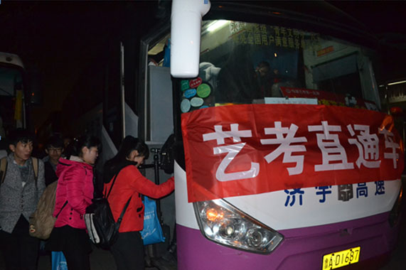 2月26日,济南长途汽车总站的10余辆“艺考直通车”开进了济南艺考培训基地,接送广大学子前往青岛、聊城等地赶考。