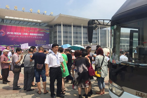 系列包车服务韩博会。韩国商品博览会在济召开,总站紧抓市场先机,积极与参展商洽谈协商,最终成功承接了博览会期间的车辆供应工作,负责接送所有参展商及经销商,包括韩国、日本等国外贵宾客户往返于机场、宾馆、会展中心。展会期间,共派发大巴车、商务车、高端车百余辆,接送参会人员近2000人,其中外宾400余人,实现收入15万余元。