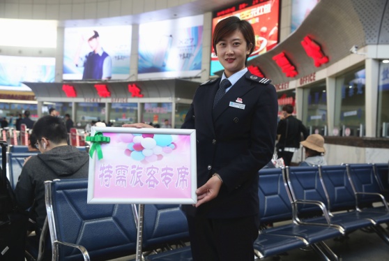 在国际盲人节到来之际,总站围绕“凝聚光明 点亮智慧生活”节日主题,关爱特殊群体,为他们营造更加便捷、顺畅的出行环境,检票部特别推出了“我是你的眼——让爱照亮世界”主题活动,在候车区域开辟“特需旅客专席”,供特需旅客休息,同时推出绿丝带护航服务:盲人旅客出行只需拨打96369电话预约,即可免费获得总站出行“绿丝带”为其开通的绿色通道,提供购票、检票、乘车等系列爱心帮扶。