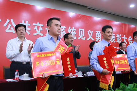 交运出租驾驶员高广怀(左一)喜获