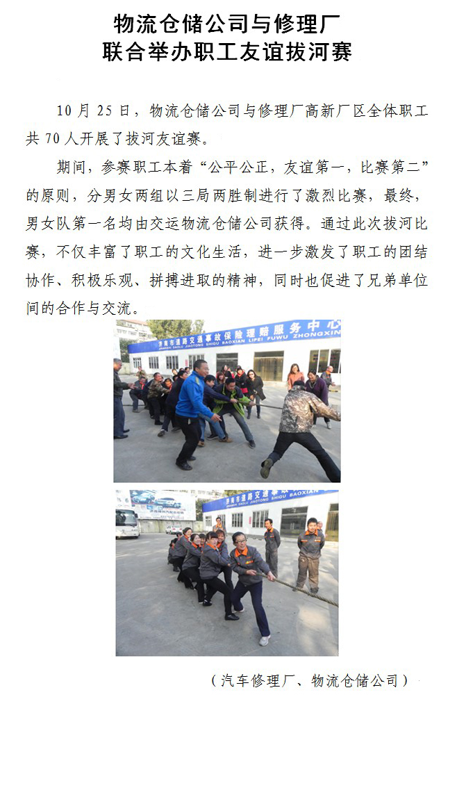 物流仓储公司与修理厂联合举办职工友谊拔河赛